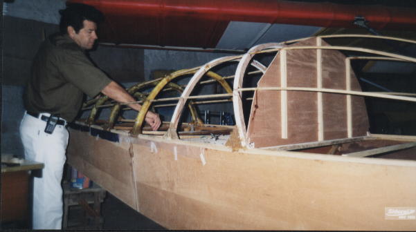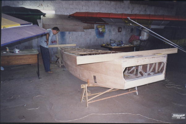 Bote todo contraplacado e iniciando trabalho para colocação das longarinas mestre.